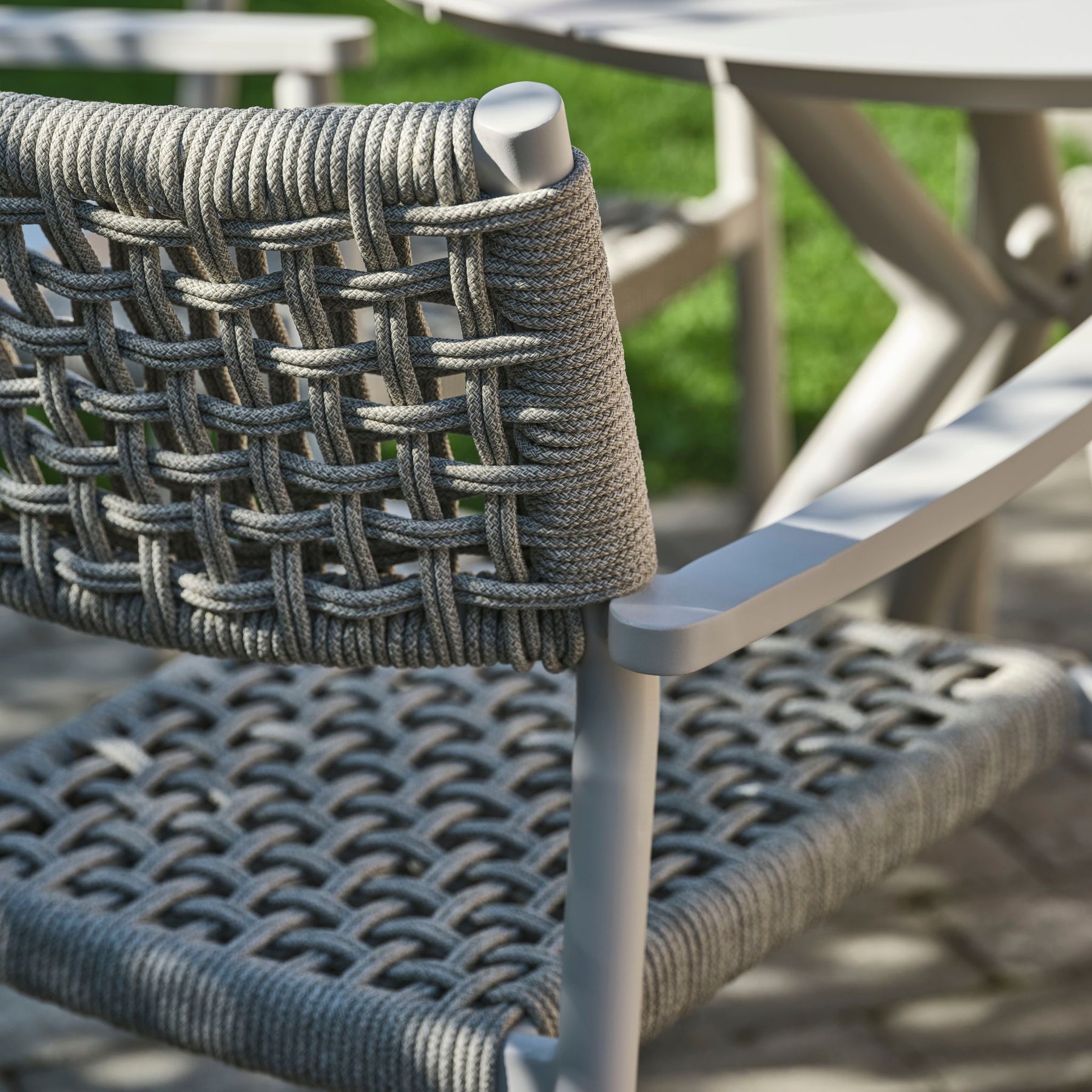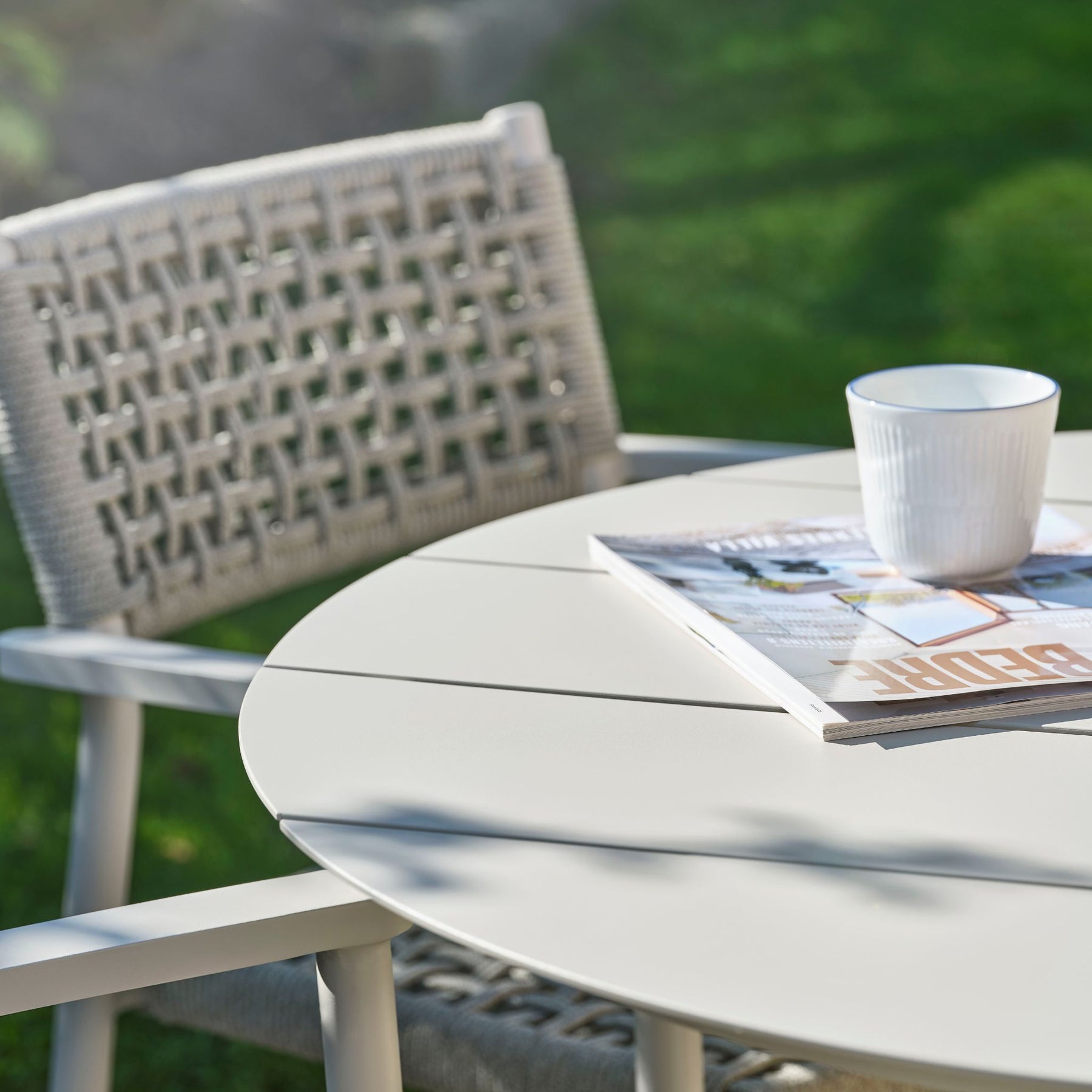 Aluminium er et oplagt valg til havemøbler, fordi det er både stærkt og let at håndtere. Den pulverlakerede overflade beskytter stellet mod vind og vejr og gør stolen nem at vedligeholde, så du kan nyde den sæson efter sæson uden større indsats.