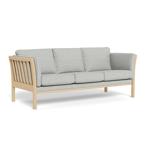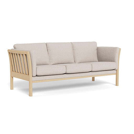 Rosenholm 3-personers sofa fra Top-line er en klassisk tremmesofa som tilbyder en blanding af moderne design og klassisk elegance. Den er fremstillet i holdbare materialer og er betrukket med det bløde og meget slidstærke Rate stof. Rammen er udført i ubehandlet bøg, som giver en naturlig varme og understreger det skandinaviske design.