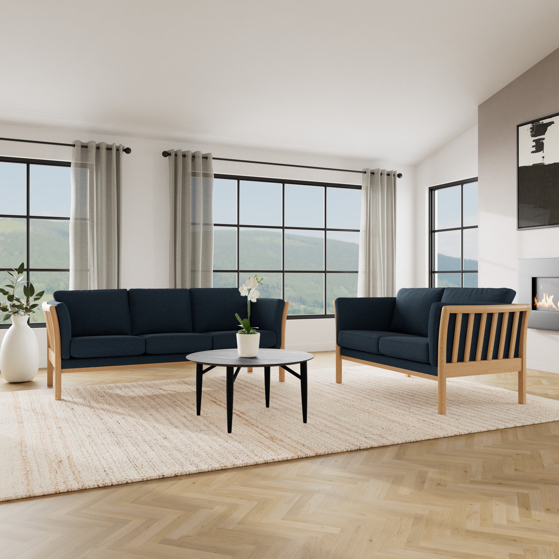 Rosenholm sofasættet fra Top-line, bestående af to klassiske tremmesofaer, tilbyder en blanding af moderne design og klassisk elegance. Sofaerne er fremstillet i holdbare materialer og er polstret med et blødt og slidstærkt stof, der sikrer langvarig komfort. Rammen er udført i ubehandlet bøg, som giver en naturlig varme og understreger det skandinaviske design.