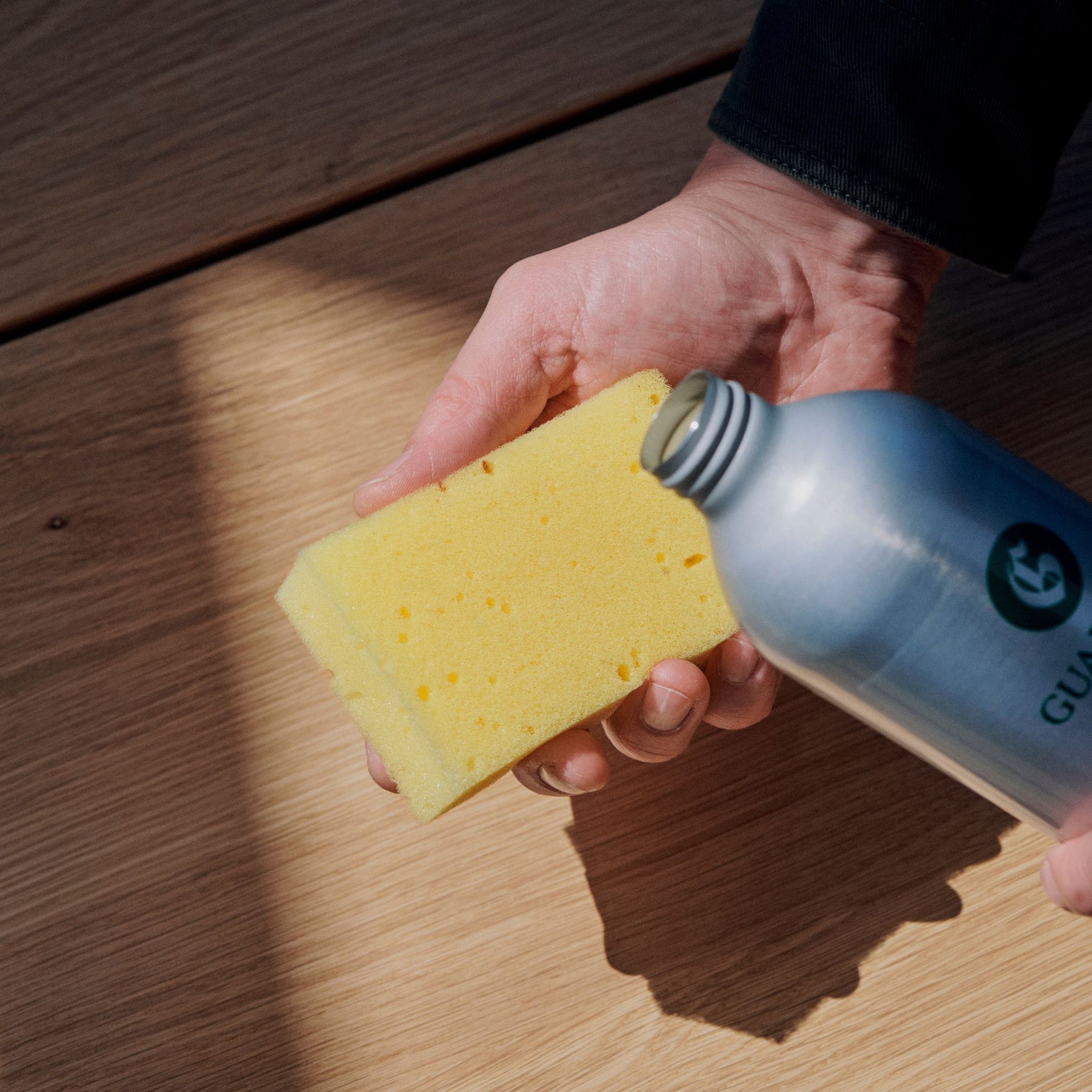 - Guardian Ædeltræsolie påføres i et fint jævnt lag (pensel, svamp, klud).