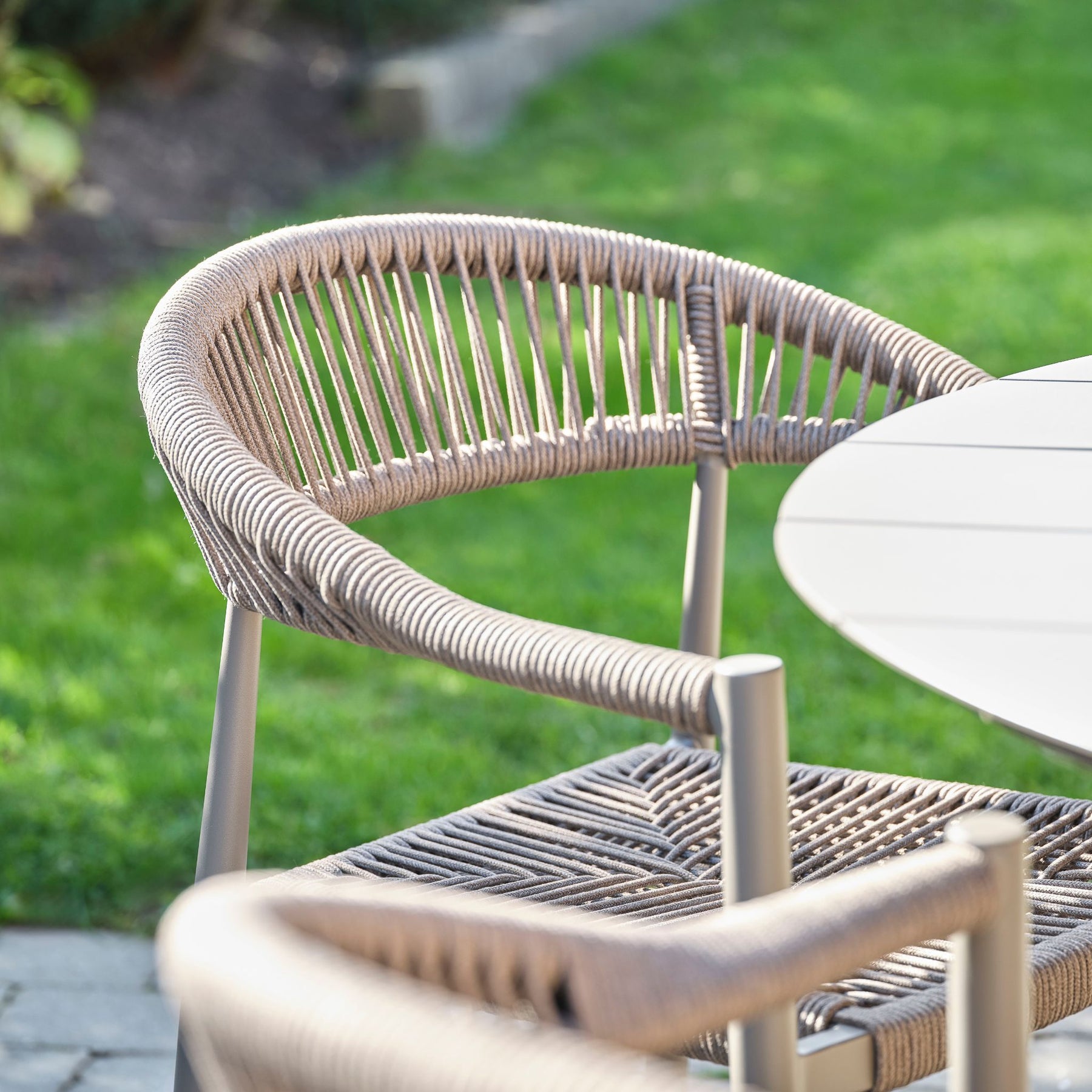 Det pulverlakerede aluminium gør stolen robust og modstandsdygtig over for det danske vejr. Materialet ruster ikke og kræver kun minimal vedligeholdelse, hvilket gør det særligt velegnet til udendørs brug. Samtidig er aluminium let, stolen nemt kan flyttes rundt alt efter behov.