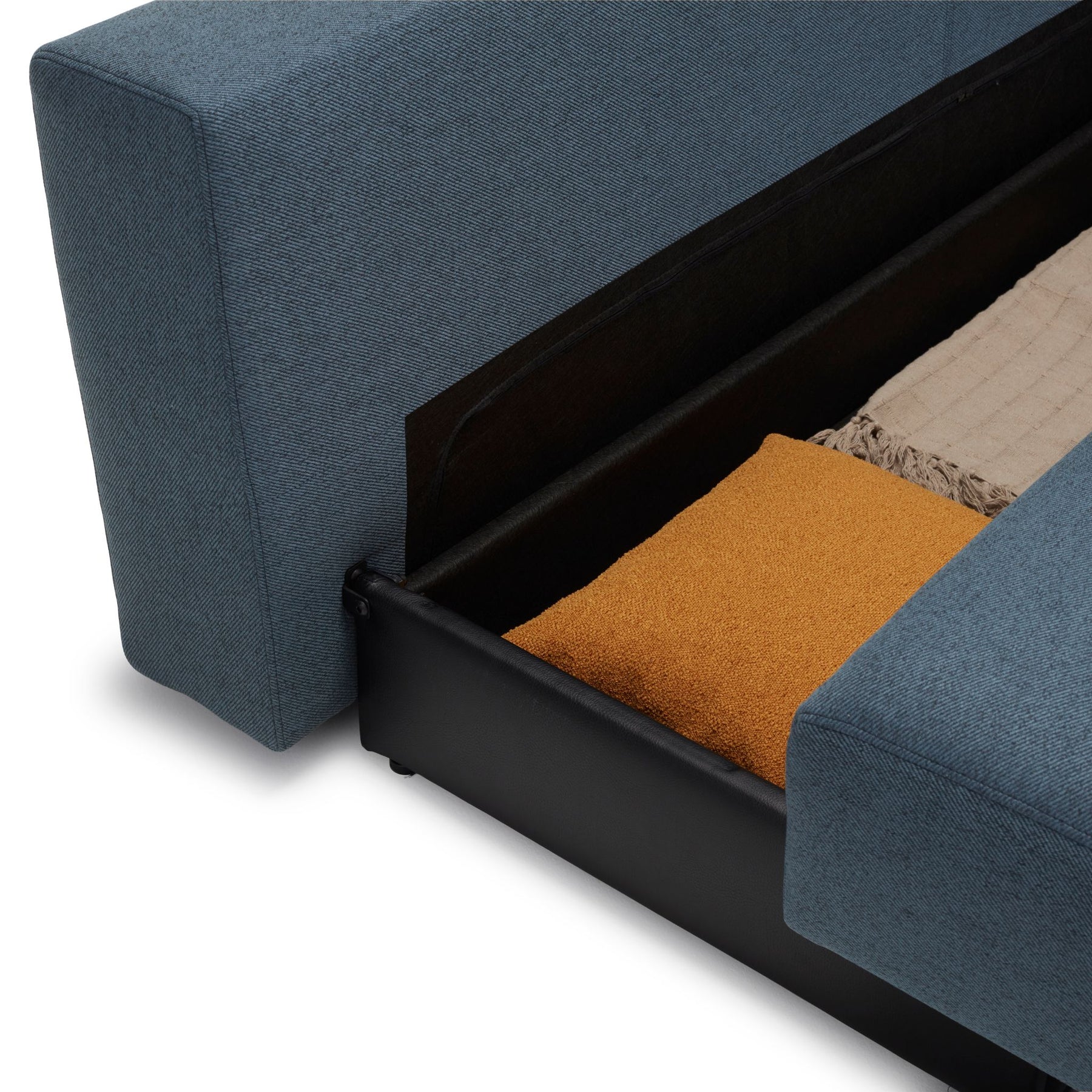 Sovesofaen er let at omdanne fra sofa til seng, og du kan bruge den som både enkeltmandsseng og dobbeltseng. Under sengen finder du et praktisk opbevaringsmagasin, der muliggør at gemme dyner, puder og sengelinned væk om dagen - helt perfekt til at holde dit rum organiseret og indbydende.